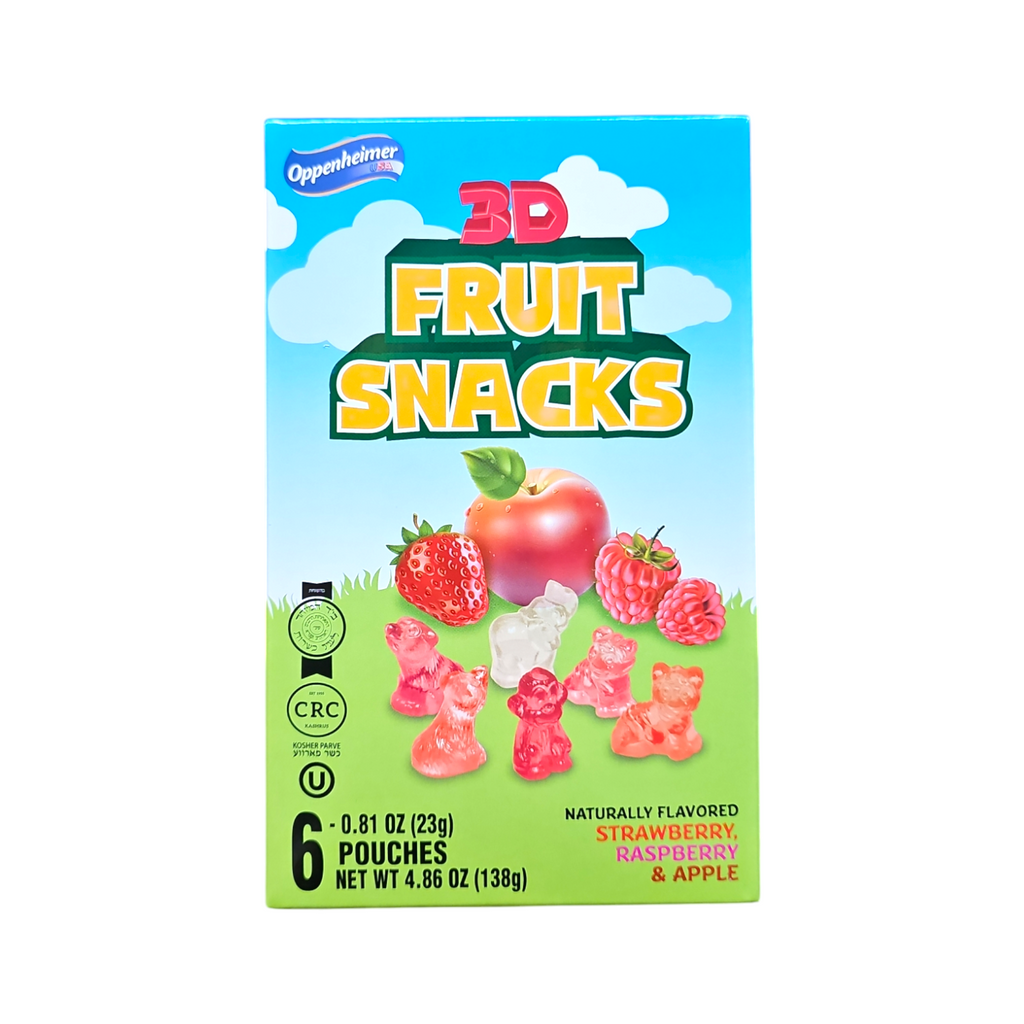 Oppenheimer, 3D Fruit Snacks Strawberry, Raspberry & Apple 6 Pouches